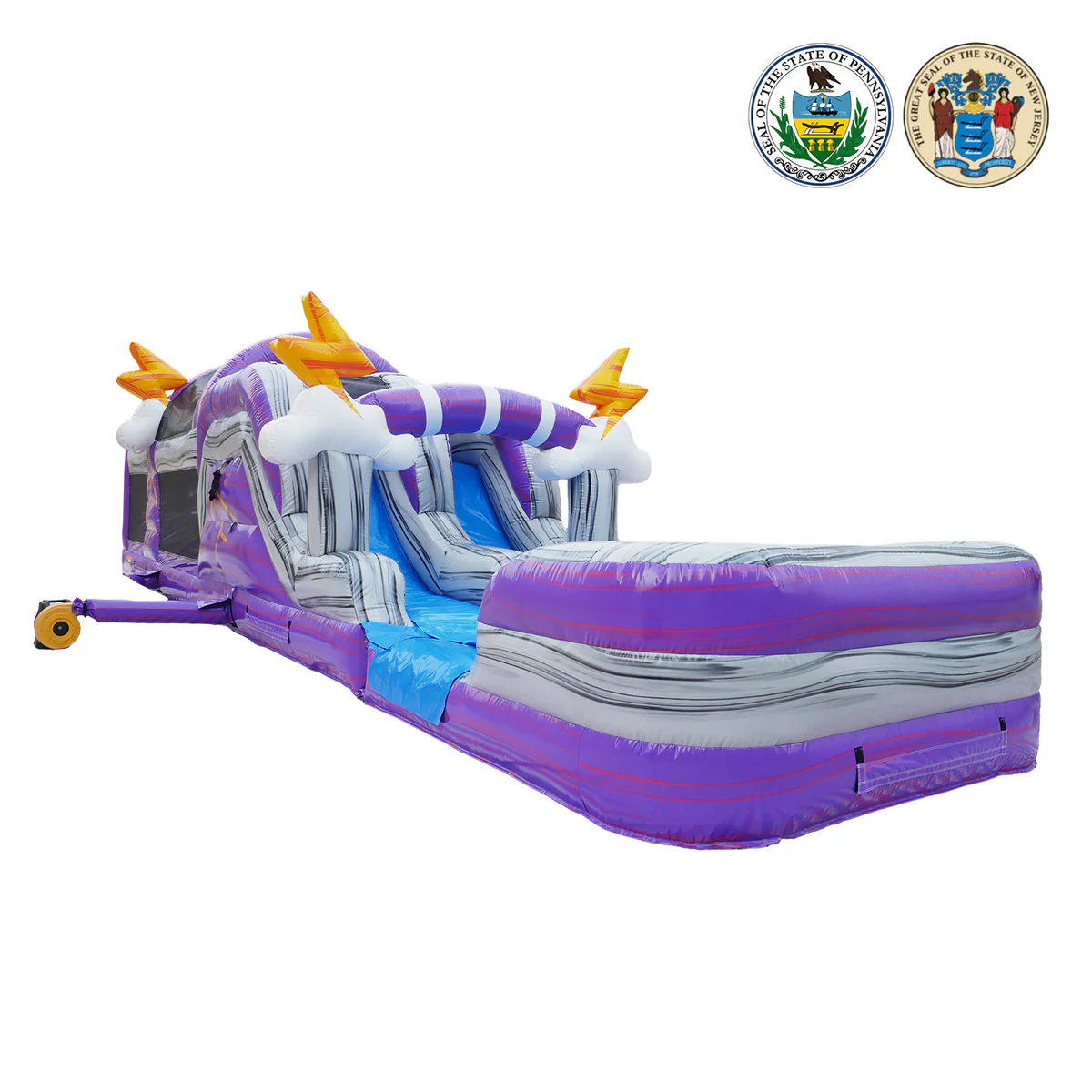 Turn up the excitement at your next event with the Thunder 46 ft Extended Wet/Dry Obstacle Course, a high-energy inflatable perfect for parties, school events, and large group gatherings. This inflatable obstacle course can be used wet or dry, allowing guests to race, climb, and slide their way through nonstop fun in any season. Setup requires approximately 50 ft L x 15 ft W x 16 ft H of clear space, plus access to electricity and a water source when used wet.